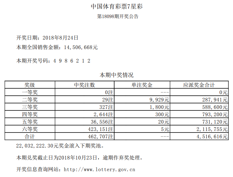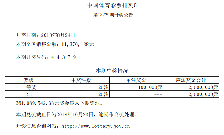 中国体育彩票8月24日开奖信息