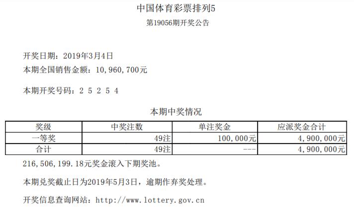 中国体育彩票3月4日开奖信息