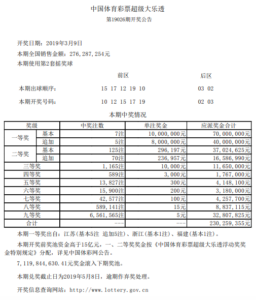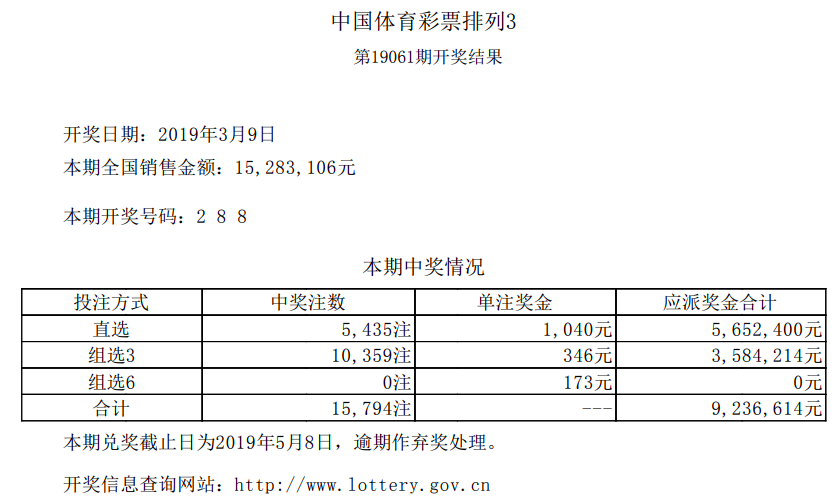 中国体育彩票3月9日开奖信息