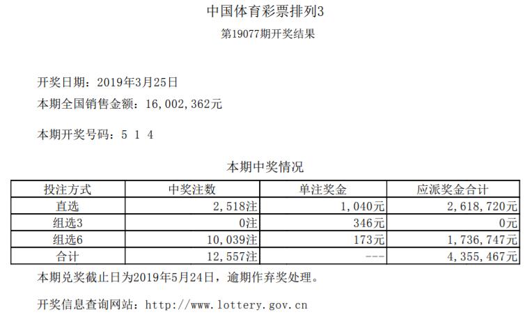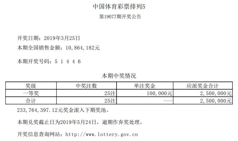 中国体育彩票3月25日开奖信息