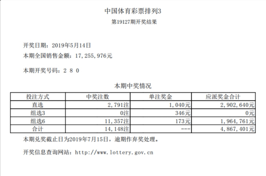 中国体育彩票5月14日开奖信息