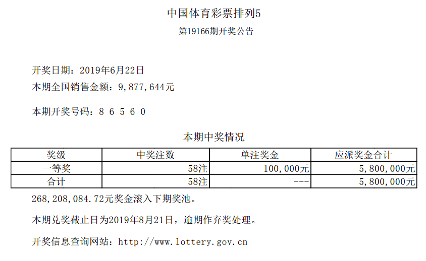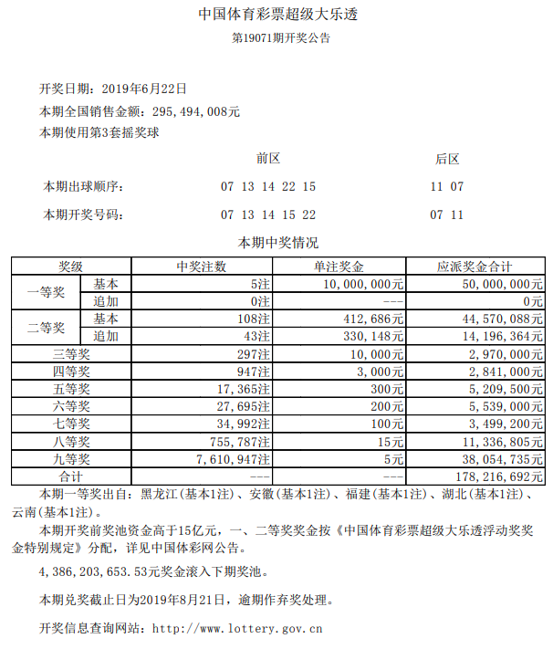 中国体育彩票6月22日开奖信息