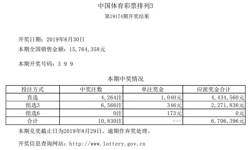 中国体育彩票6月30日开奖信息