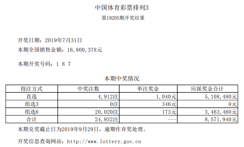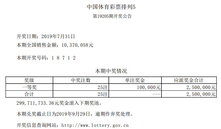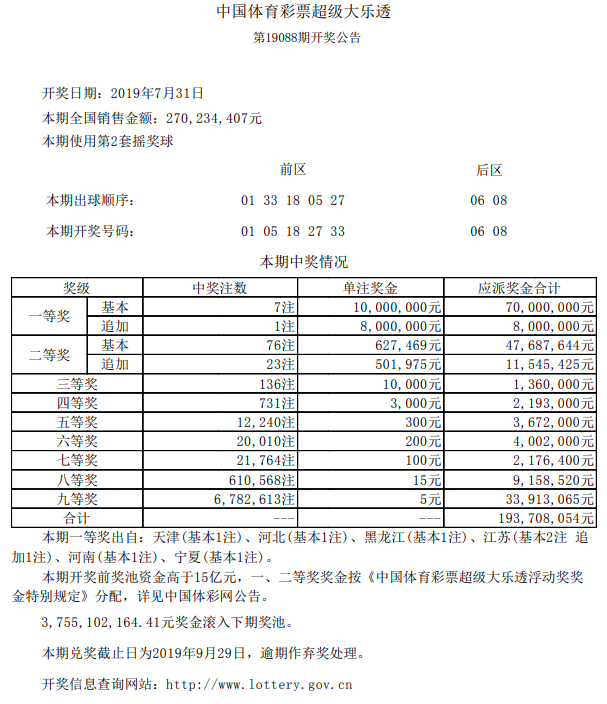 中国体育彩票7月31日开奖信息