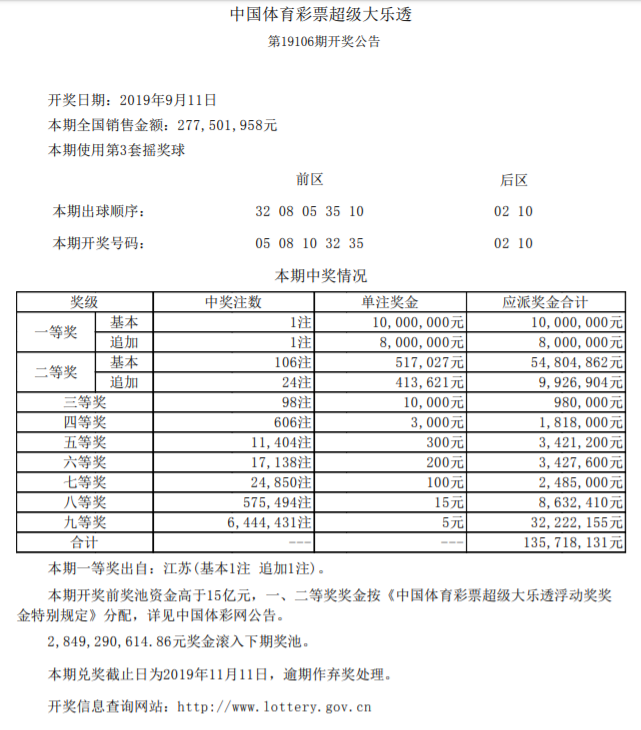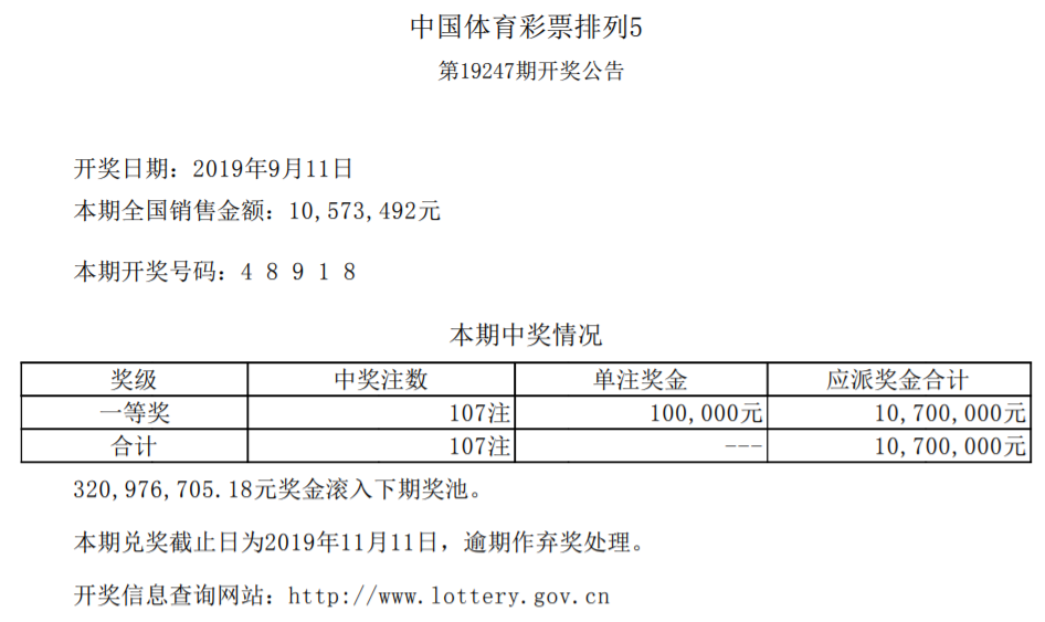 中国体育彩票9月11日开奖信息