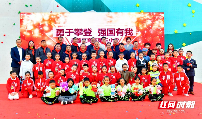 红网时刻12月9日讯(记者 周雨墨)在常人不可想象的垂直岩壁上,进行速度接力竞赛,表演“人体旗帜”,12月8日,芙蓉区育英第三小学落成典礼暨攀岩特色项目研讨会在育英第三小学举行。