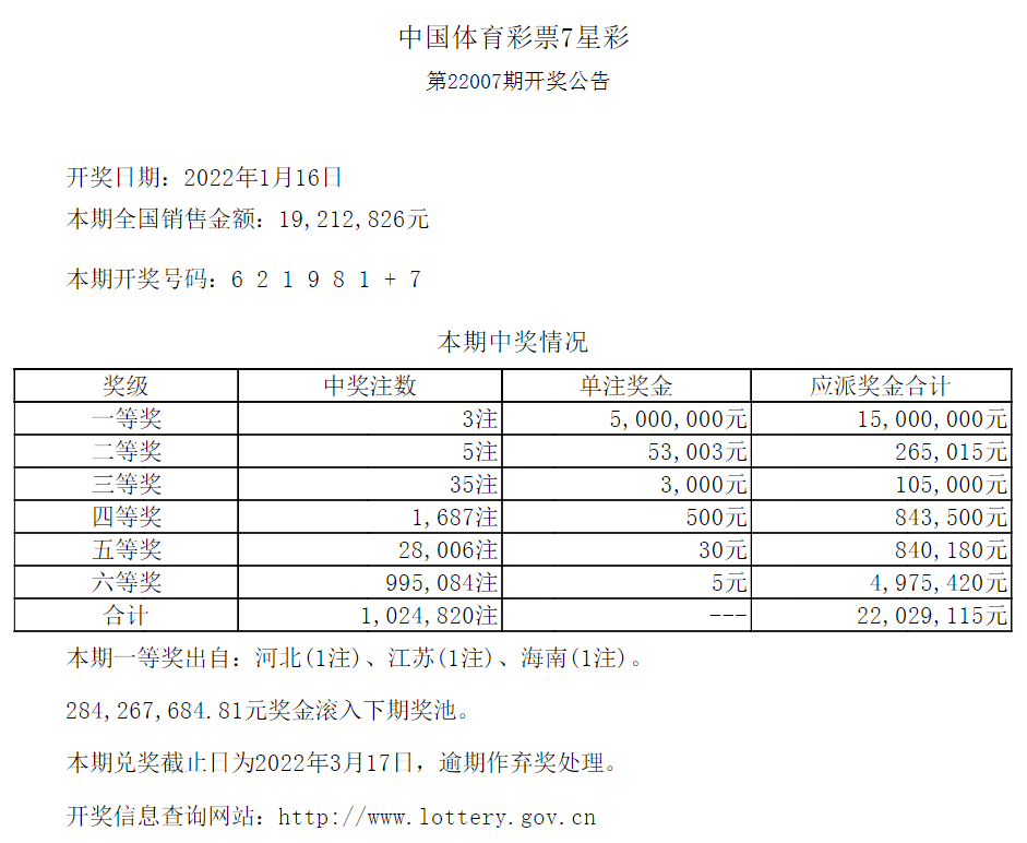 中国体育彩票1月16日开奖信息