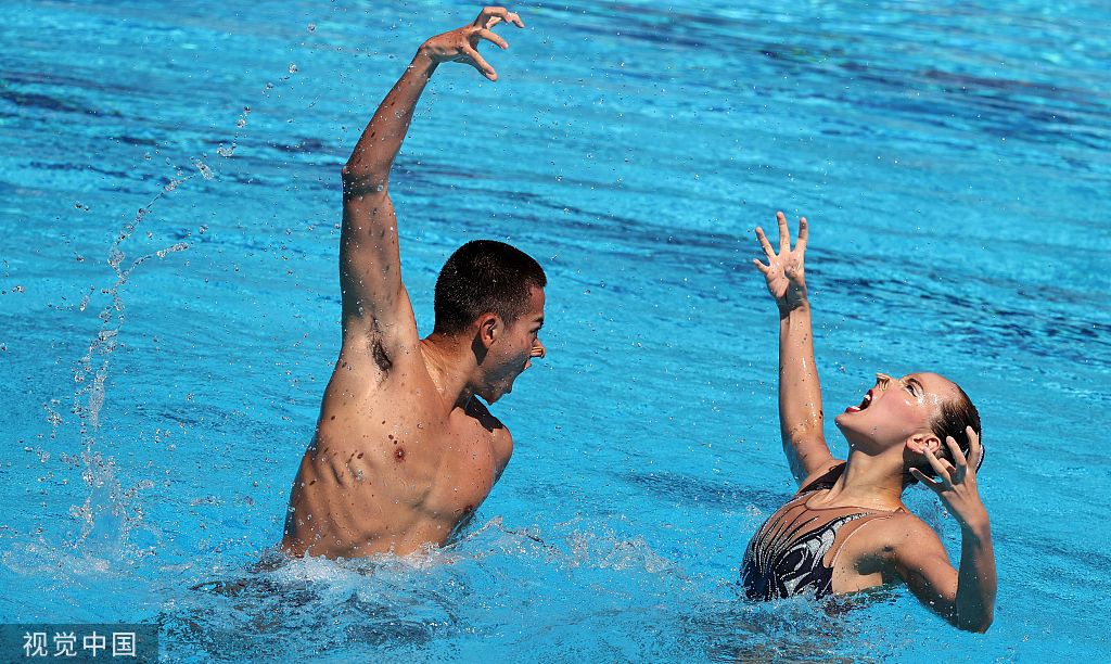 在20日进行的第19届世界游泳锦标赛花样游泳混双技术自选决赛中,中国组合石浩玙/张依瑶摘得铜牌,这是中国花游选手在世锦赛混双项目上首次获得奖牌。
