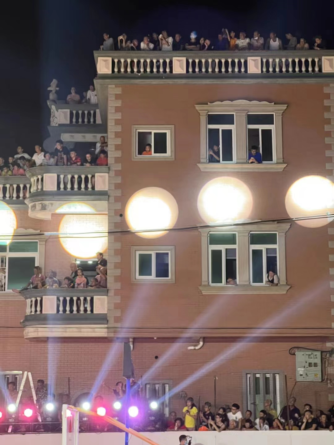 球场旁的三层洋楼挤满了人。澎湃新闻记者胡杰图