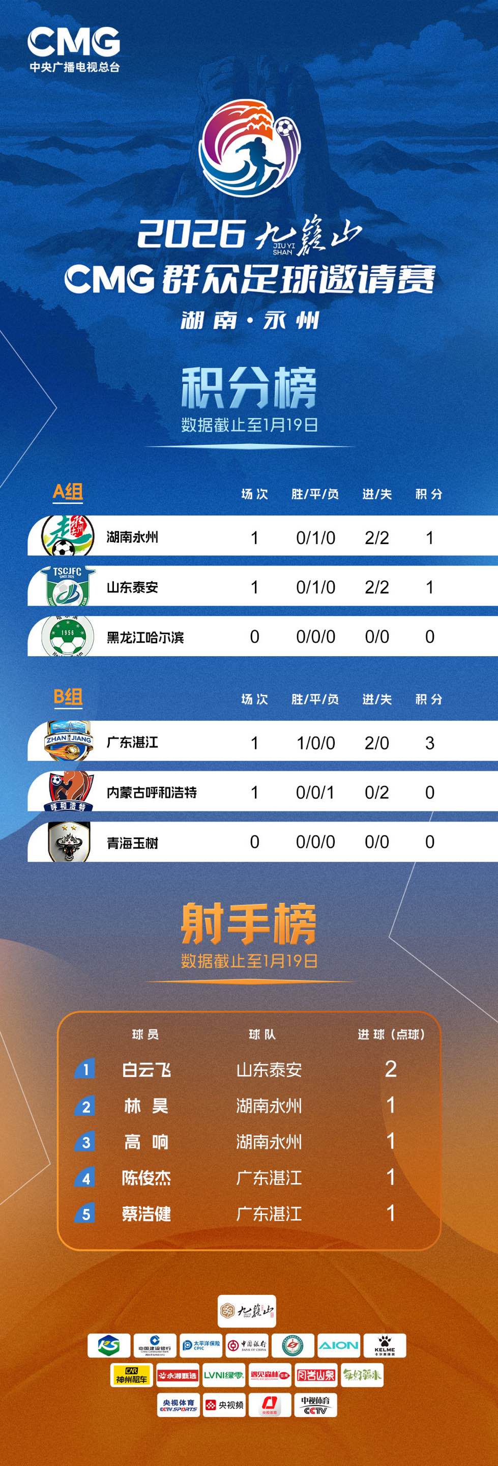 2026CMG群众足球邀请赛积分榜(截至1月19日)