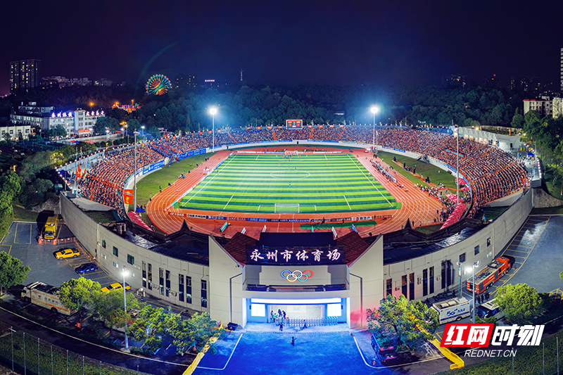 翻新升级后的永州市体育场,在2025年湘超比赛期间成为了球迷狂欢的舞台。摄影/何卓