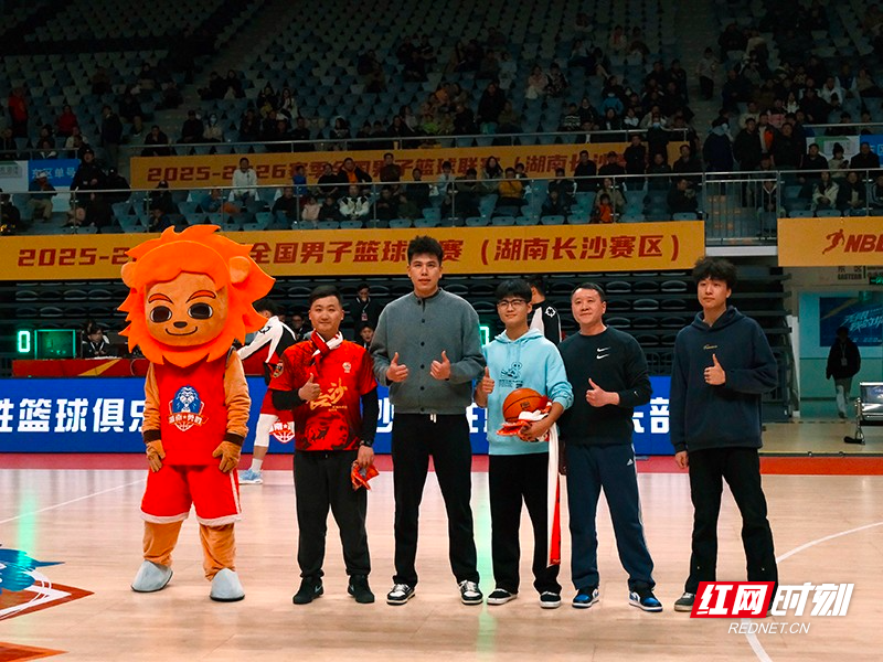 中场互动环节,球迷们与前长沙勇胜球员黎璋霖(左三)合影。