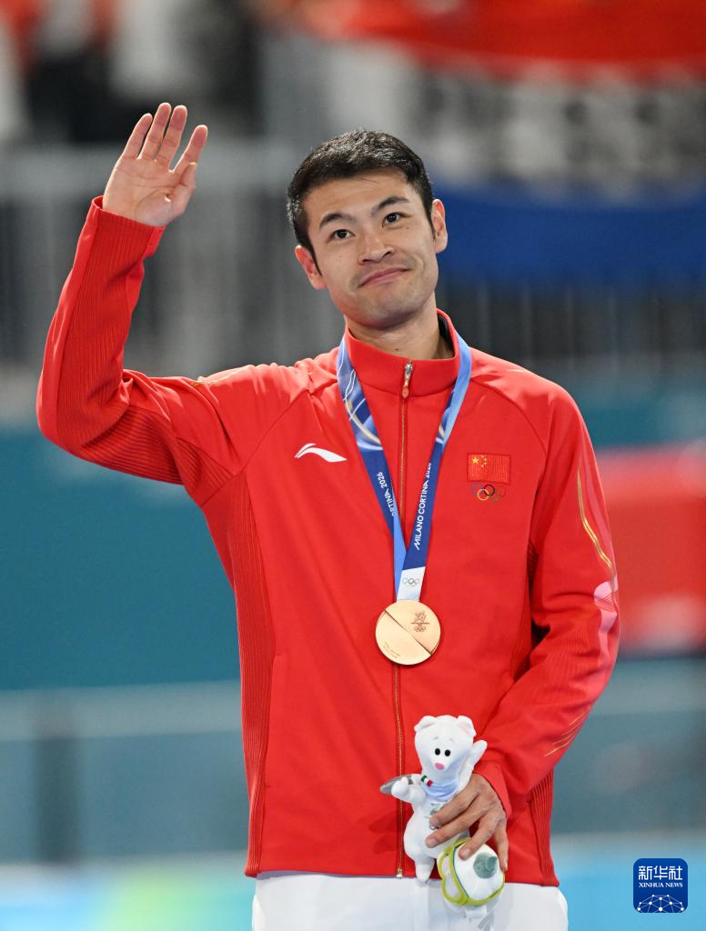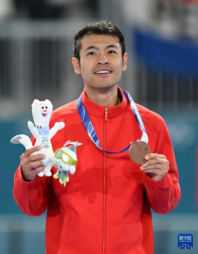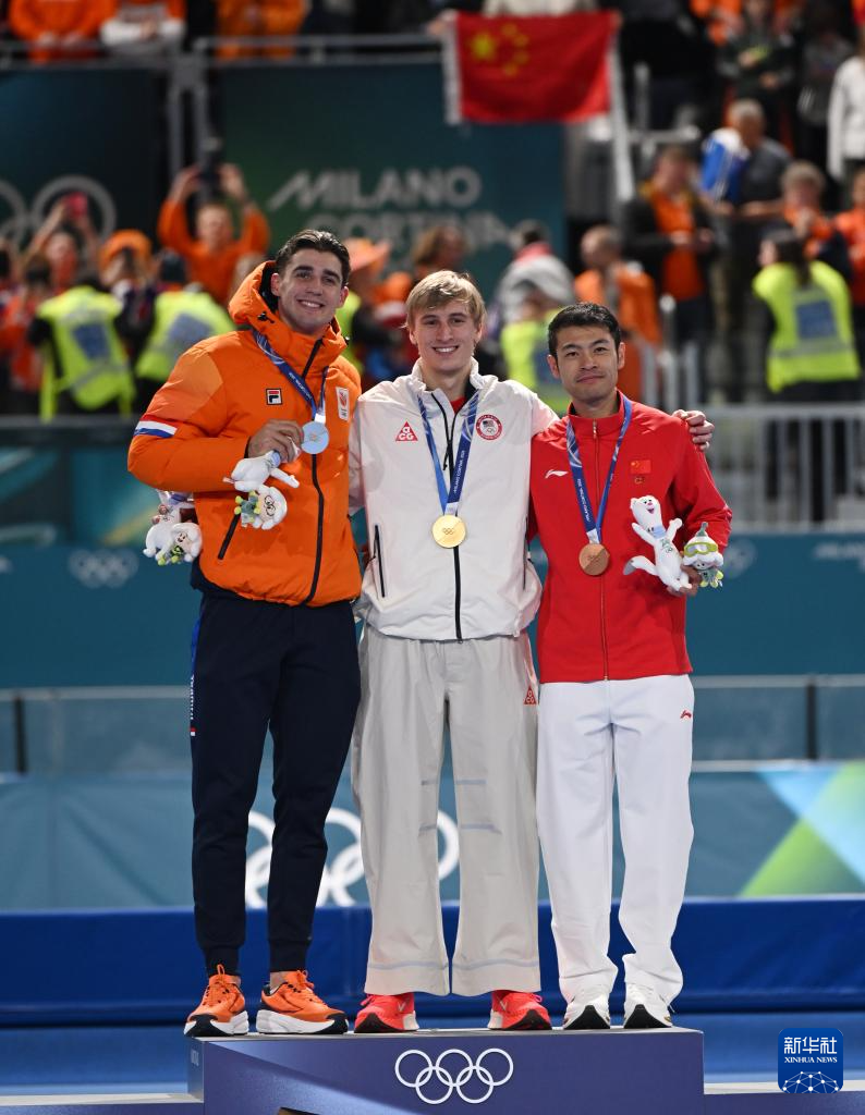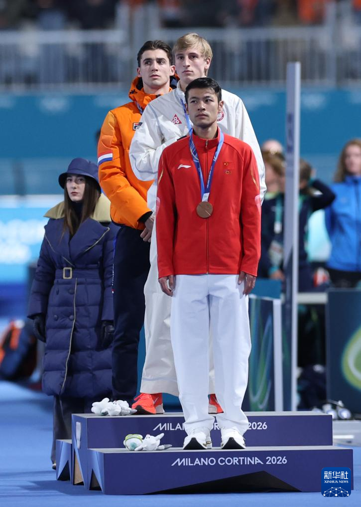 当地时间2月11日,米兰-科尔蒂纳冬奥会速度滑冰男子1000米决赛在意大利米兰举行,中国选手宁忠岩获得铜牌。