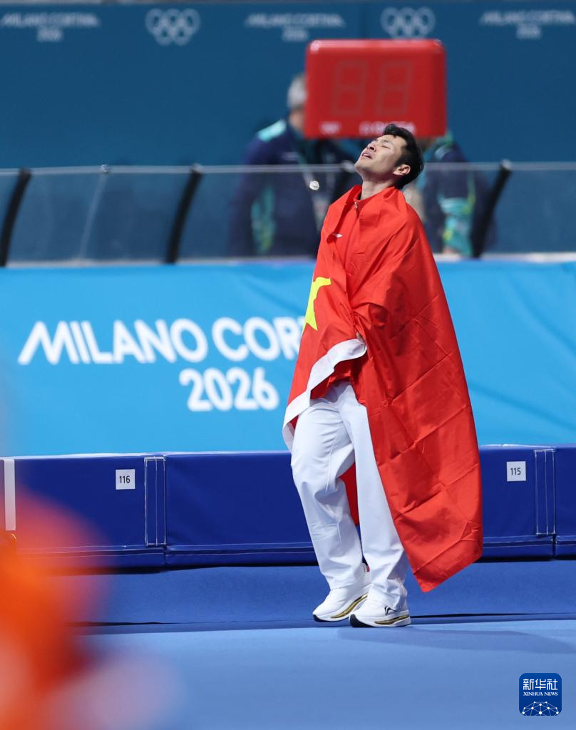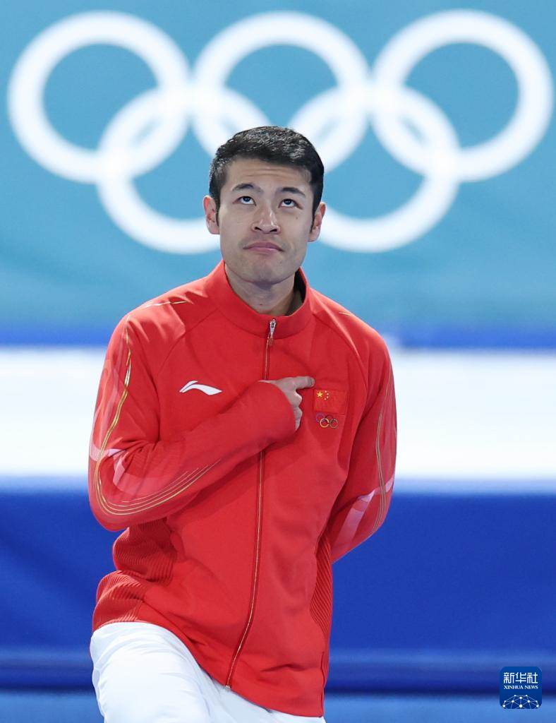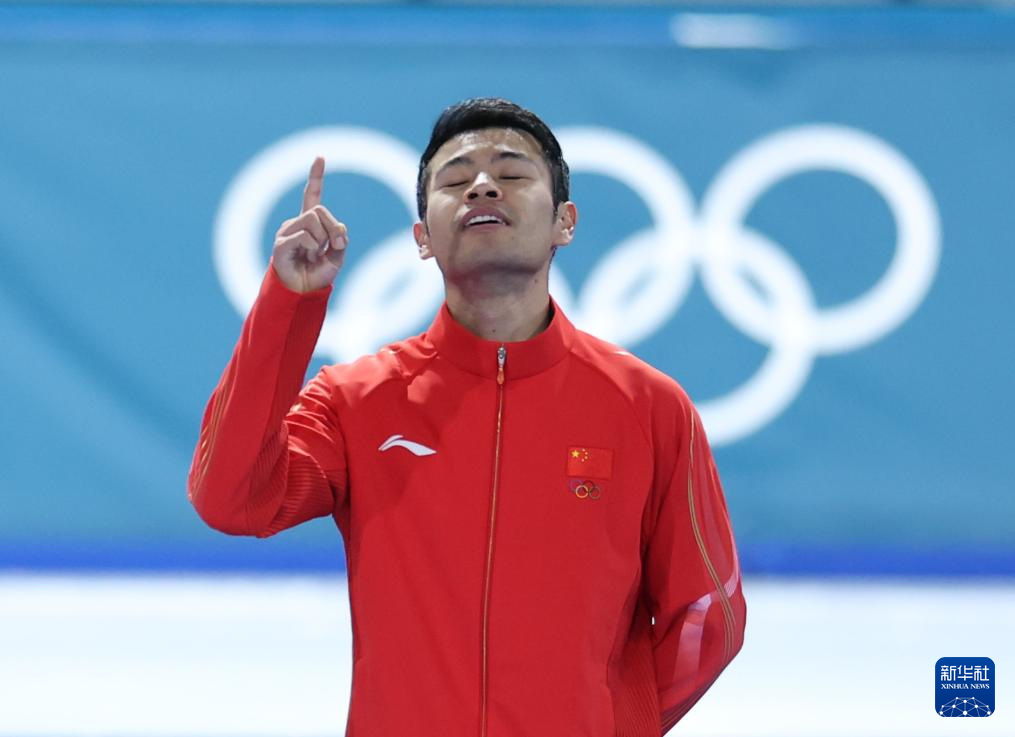 2月11日,宁忠岩在比赛后身披国旗庆祝。
