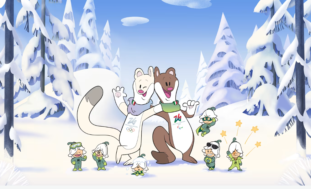 2026年米兰冬奥会吉祥物由意大利全国中小学生参与设计,经过公众投票评选,雪鼬姐弟蒂娜和米罗从1600个参赛作品当中脱颖而出,成为2026年米兰-科尔蒂纳冬奥会和冬残奥会吉祥物。