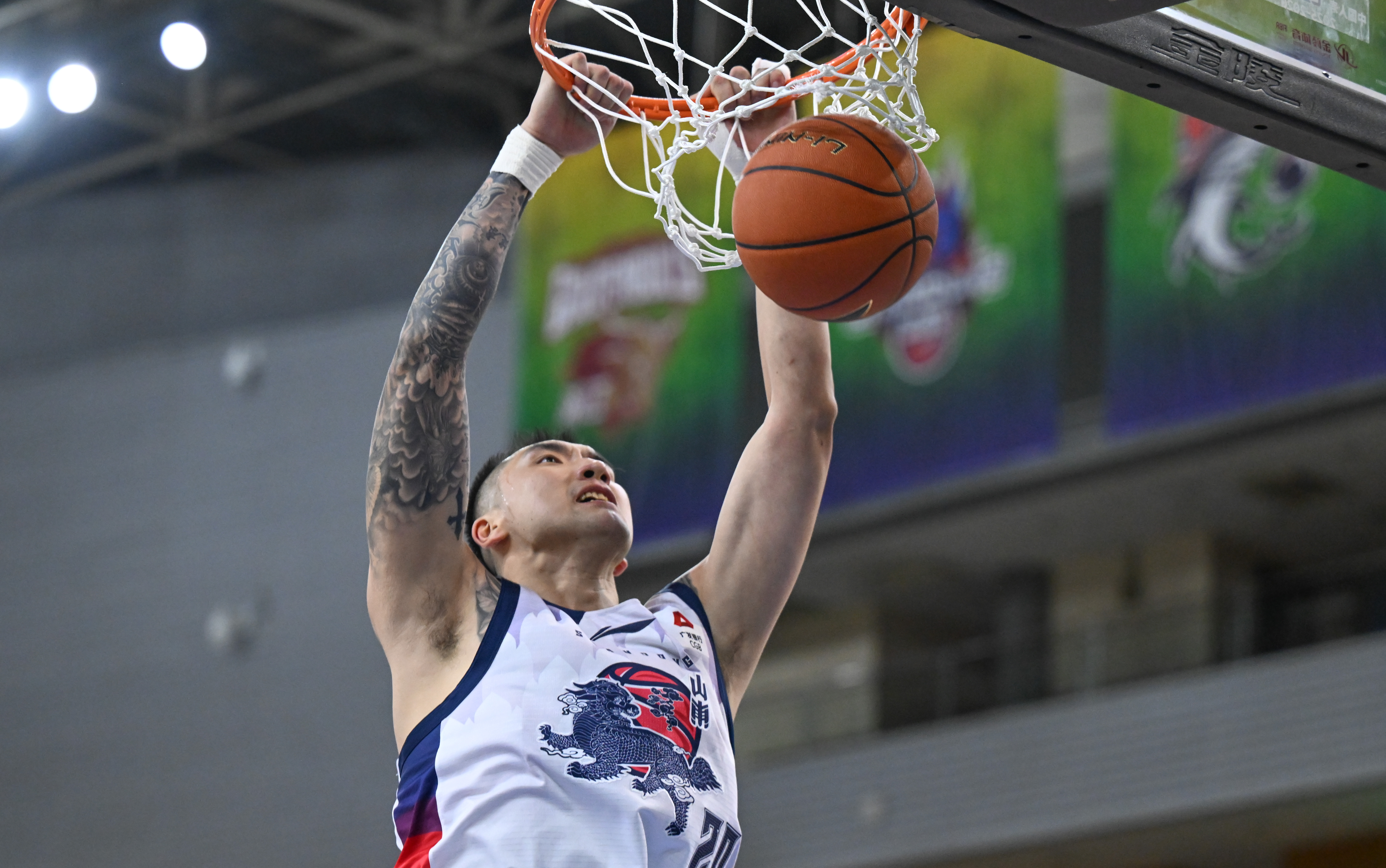 2月6日,山东队球员陶汉林在比赛中扣篮。新华社记者 贝赫 摄