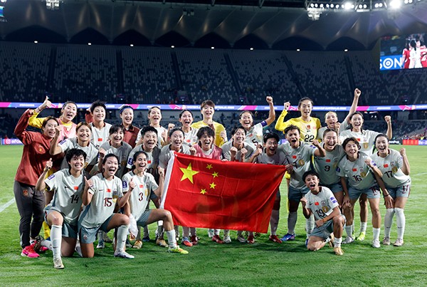 女足亚洲杯小组赛,中国女足三战全胜排名小组第一。图/新华社