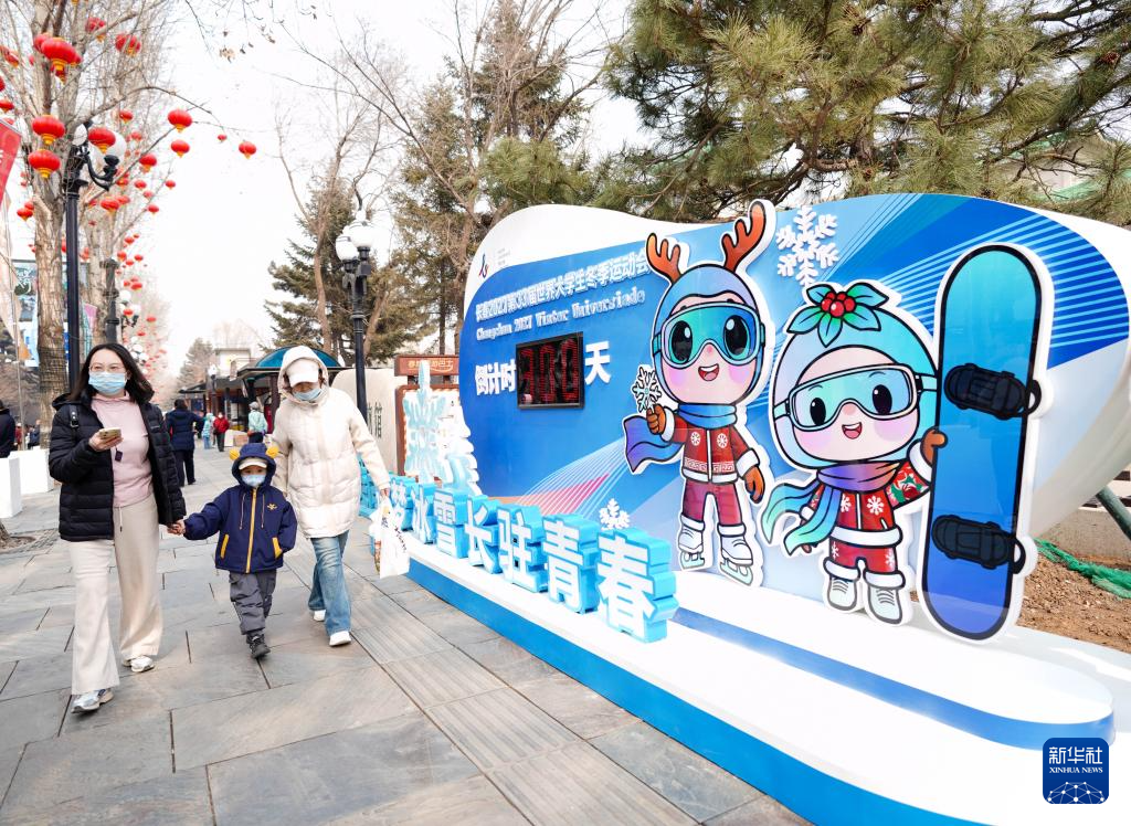 当日,长春和吉林举行了多项嘉年华庆祝活动,流行音乐会、大型光影秀、非遗传承展示等活动轮番上演。在吉林中旅松花湖滑雪度假区,大冬会吉祥物人偶脚踏雪板,与由300名大学生和滑雪爱好者组成的方阵并肩在雪道上顺势滑行,区域内多块大屏幕上展示着会徽和吉祥物图案,营造出浓厚的大冬会氛围,“文体旅”融合特色进一步彰显。