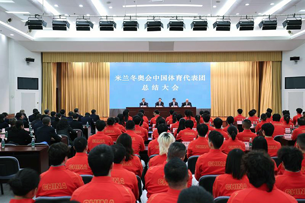 2月28日,米兰冬奥会中国体育代表团总结大会在北京举行。图/新华社