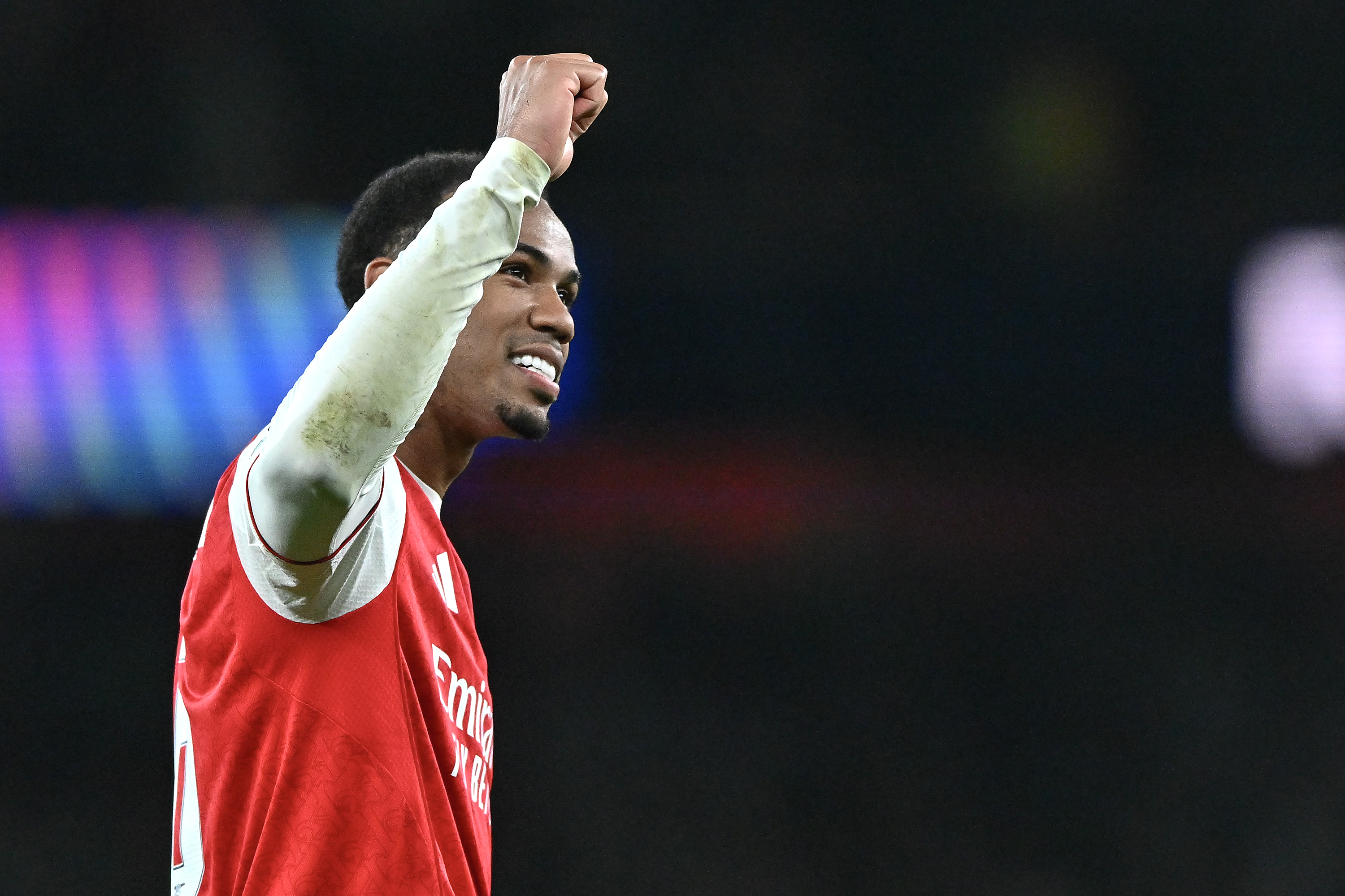 4月15日,阿森纳队球员加布里埃尔庆祝球队晋级。新华社发