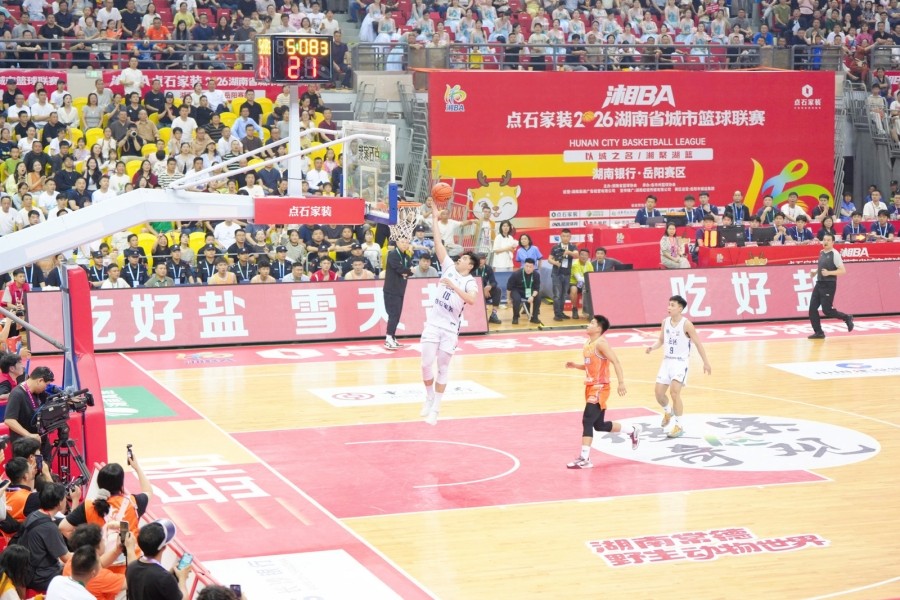 红网时刻新闻4月19日讯(记者 符洹雨)4月19日晚,点石家装2026年湖南省城市篮球联赛(湘BA)常规赛第5轮再战两场。湘潭队主场以78-67击败怀化队,岳阳队主场则以75-67力克益阳队。
