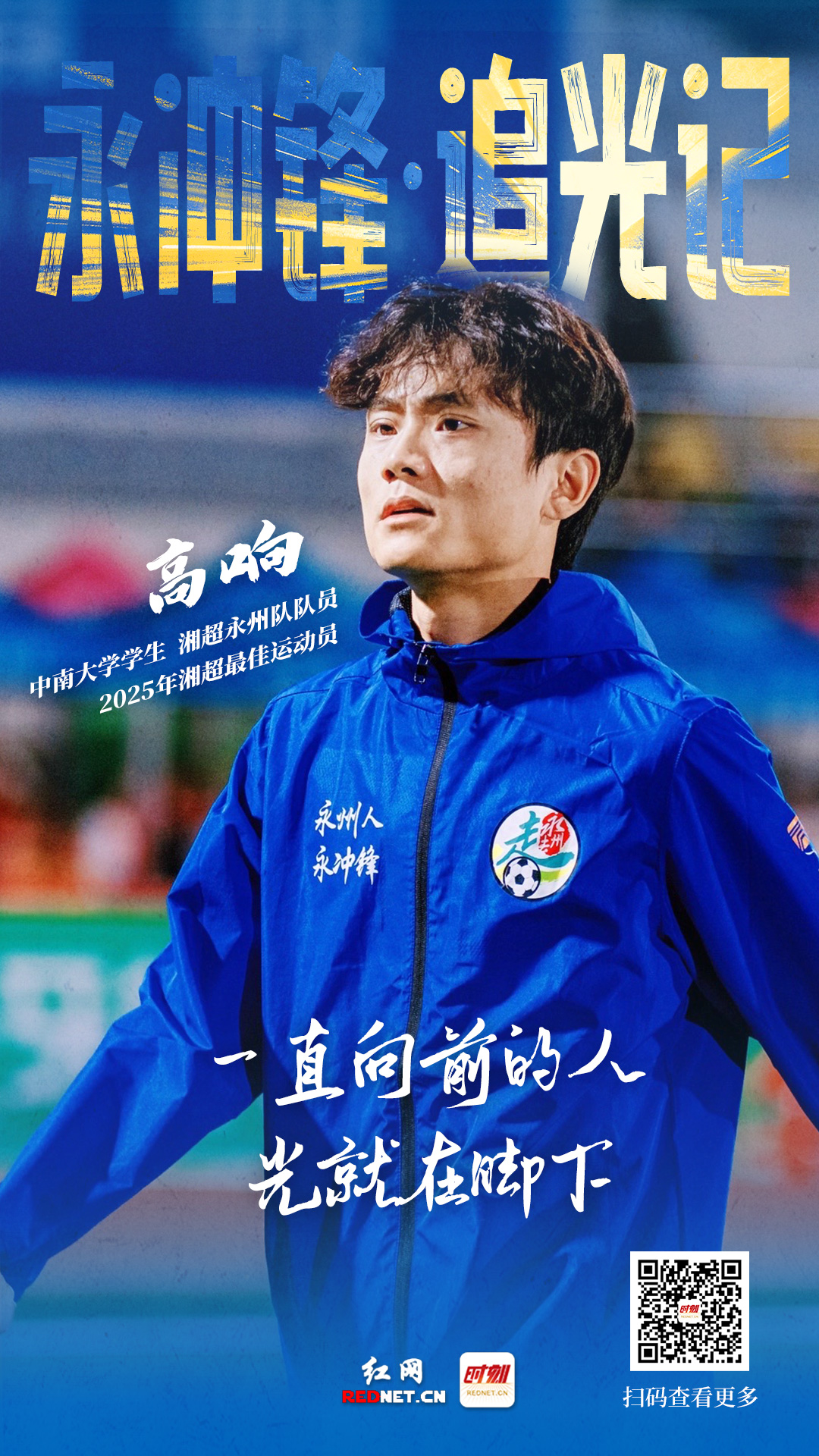 过去一年里,这种奔波早已成为习惯。长沙的学业、永州的训练、各地的比赛,高响像一名不知疲倦的奔跑者,穿梭在不同的城市之间。2025年12月,他随永州队捧起湘超冠军奖杯,个人荣膺赛季最佳运动员,并被授予“永州荣誉市民”称号。