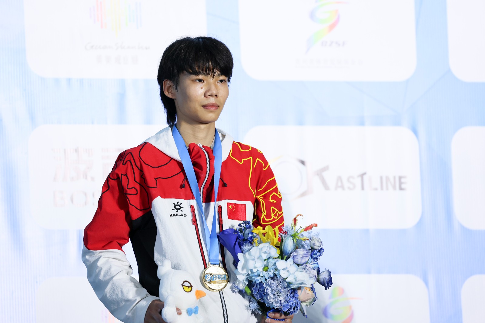 储守宏、周子羽两人全程发挥稳定,一路过关斩将。半决赛中,两人双双爬进4秒9区间:周子羽比出4秒901,储守宏则以4秒916进入决赛,展现了亚洲顶级速度水平。最终在决赛中两人相遇,上演“中国德比”。储守宏以4秒904摘得金牌,周子羽以5秒043收获银牌,印度尼西亚选手里奥纳多以5秒150获得季军。