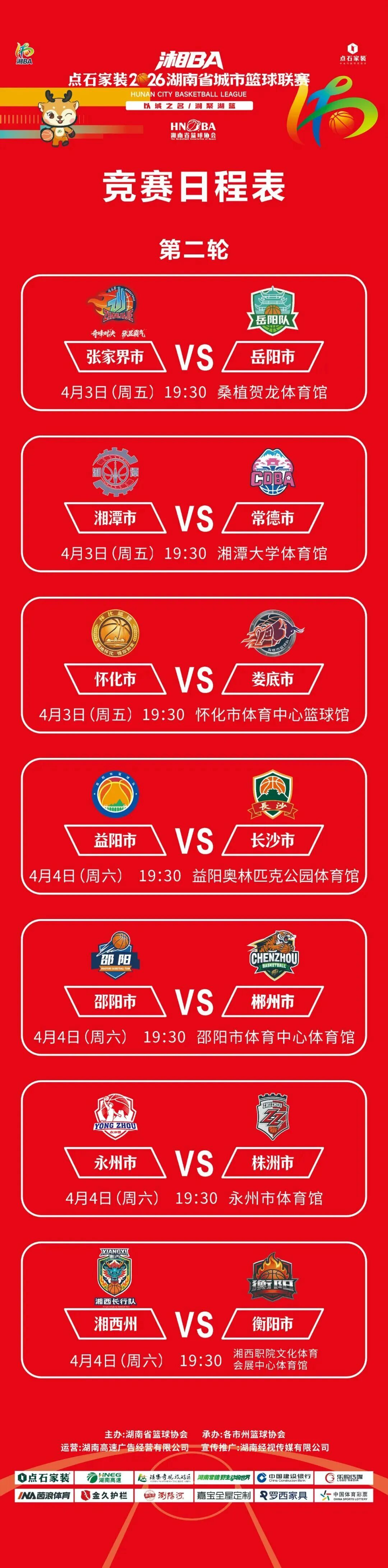 长图│2026湘BA第二轮赛程速了解
