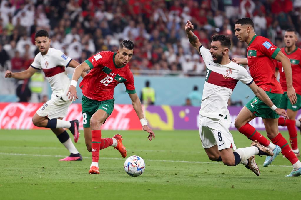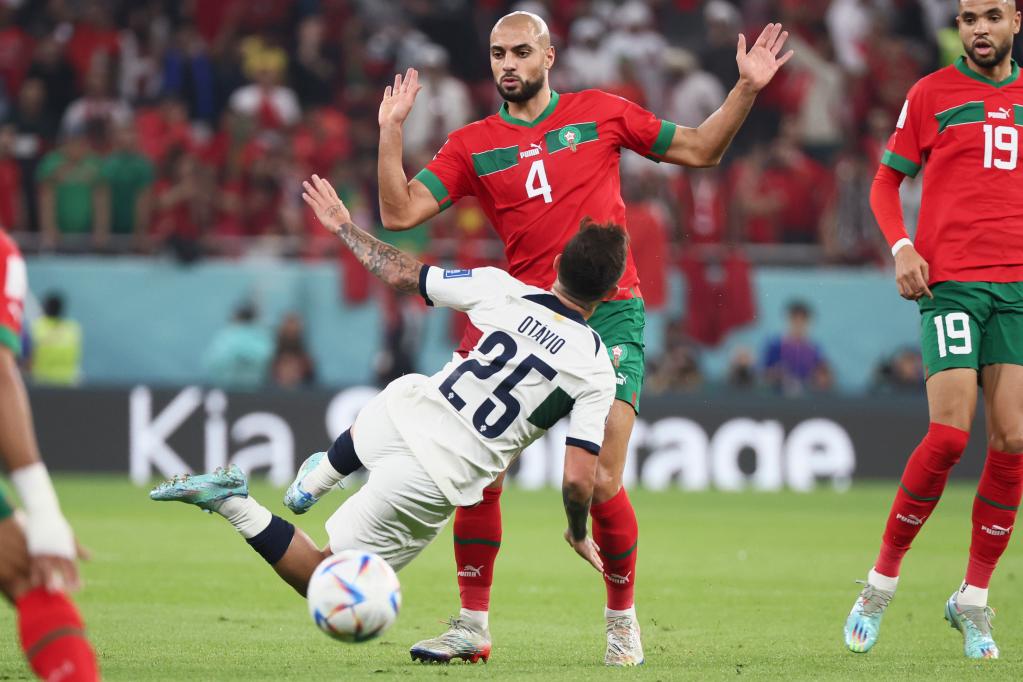 补时阶段,摩洛哥队替补上场的前锋切迪拉累计两张黄牌被罚下。随着终场前佩佩小禁区内的头球攻门偏出,葡萄牙队无力回天。