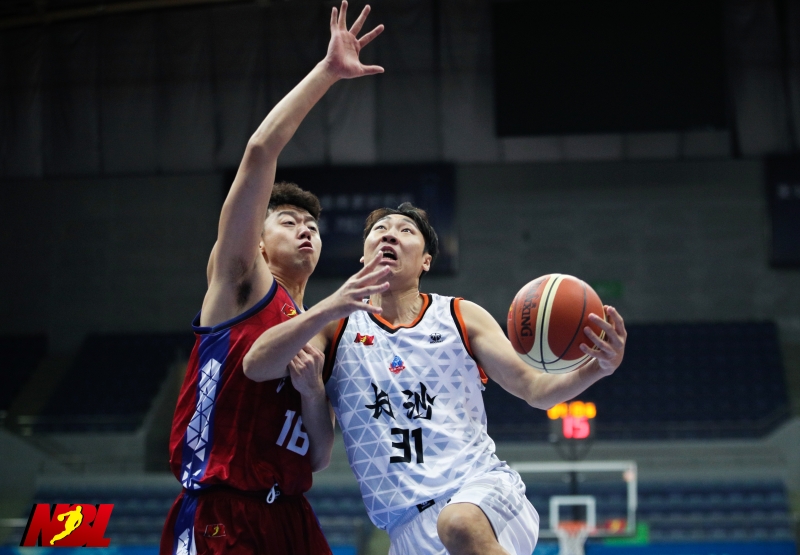 长沙湾田勇胜球员孙贺男(右)带球突破。图/NBL官方