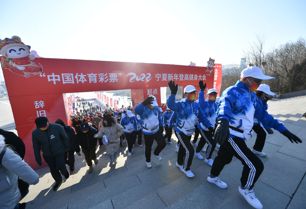 2022年1月1日,在银川市览山公园,市民参加登高健身比赛。新华社记者 王鹏 摄