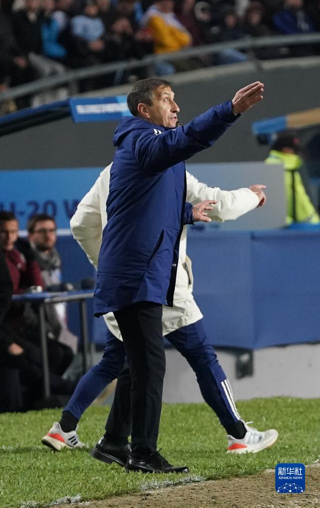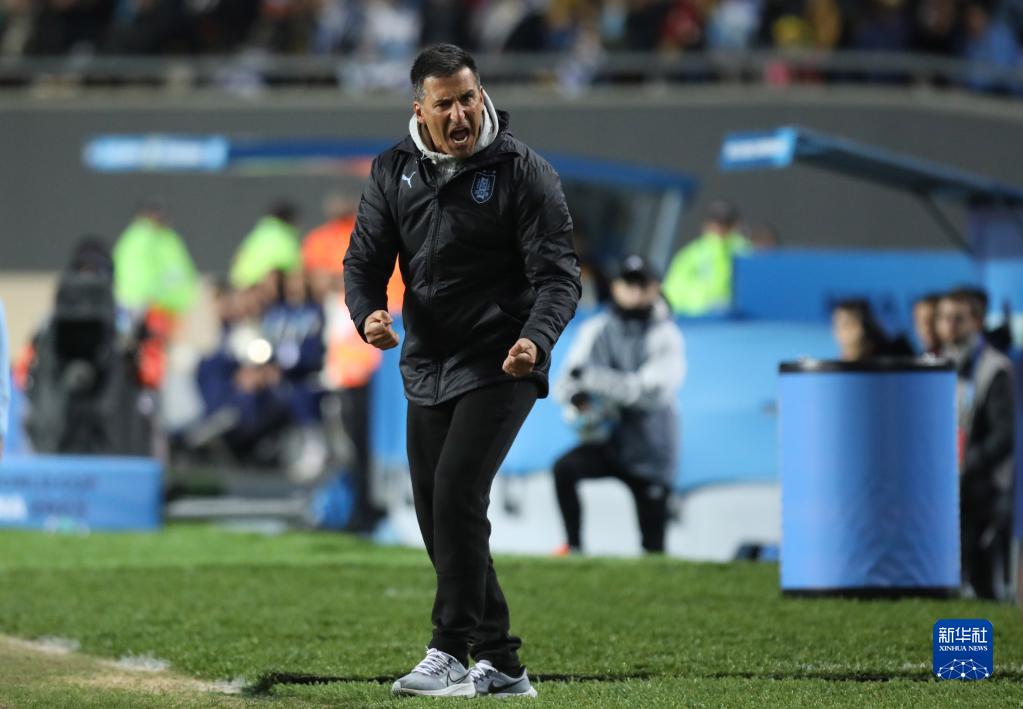 6月11日,乌拉圭队主教练布罗利在比赛中。新华社发(马丁·萨巴拉 摄)