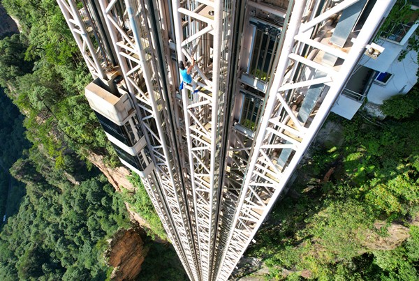 当日早晨,法国知名攀岩运动员让·米歇尔·卡萨诺瓦(中文名:马今),徒手攀爬湖南张家界国家森林公园172米高的百龙天梯贴山钢结构井架,用时65分钟,顺利完成他与百龙天梯的“十年之约”。他曾于2013年5月18日用时68分钟,成功徒手攀爬过该钢结构井架。