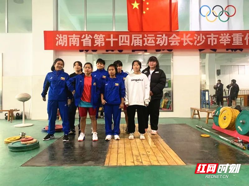 在长沙集训的缅甸运动员走进贺龙体育运动学校举重训练馆。