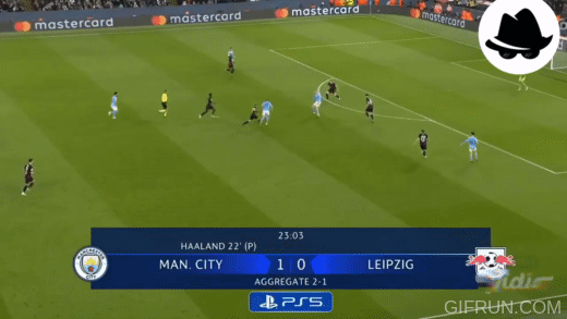 又是曼城快速传到前场,哈兰德接应回敲京多安,自己前插;京多安给左路格雷利什,自己前插,接格雷利什传球;此时哈兰德后点飘动,莱比锡后卫线有点迟疑,京多安自己拿球射门,4比0。