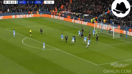 他和B席在中路和右路走位,狡猾多变,没事就躲到右边去接球:莱比锡有点尴尬,没法扩,只好任曼城两边路穿插。