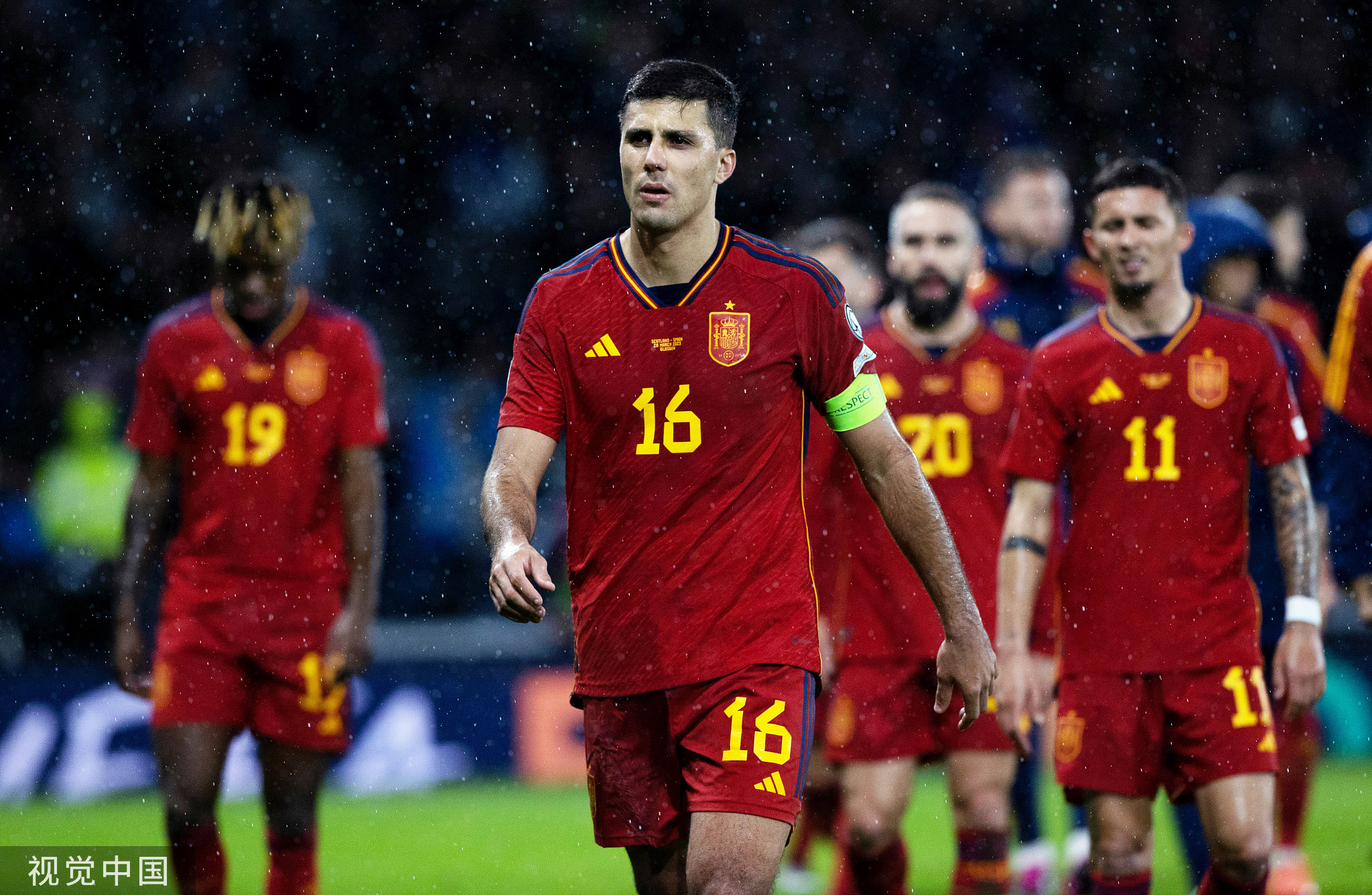 面对苏格兰队,西班牙以0-2的比分落败,这也是西班牙在本届欧预赛的首败。