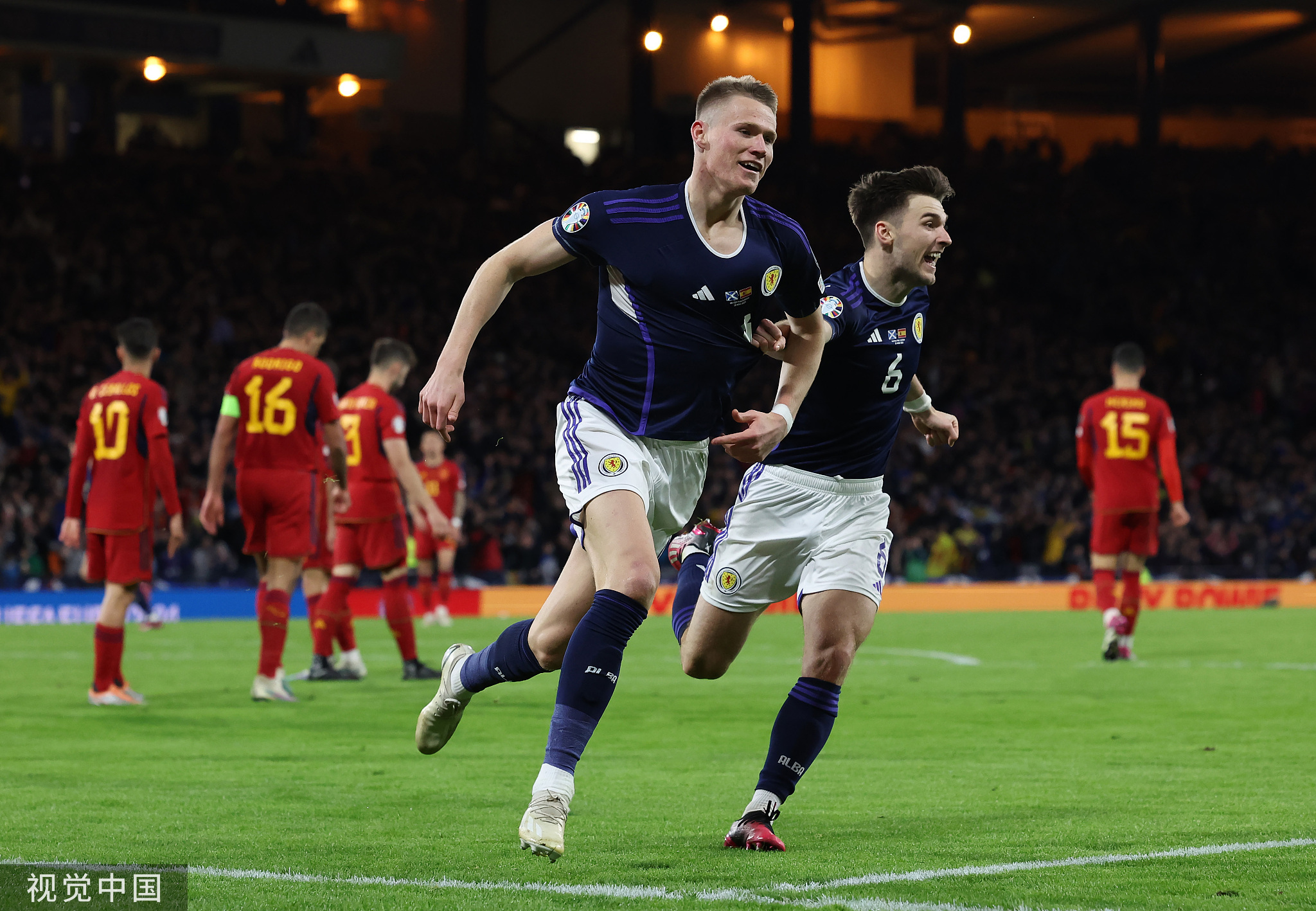 此前他37次代表苏格兰队出场仅打进1球,终于在此时迎来爆发,也让首场欧预赛3-0大胜挪威的西班牙吃到了苦头。