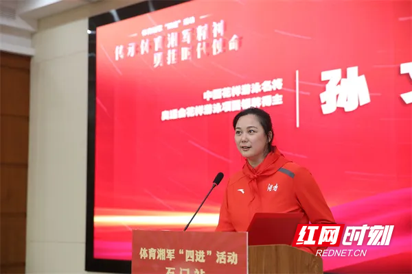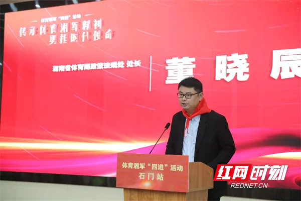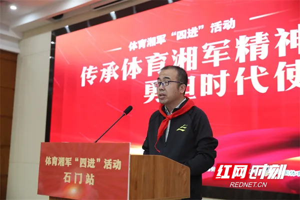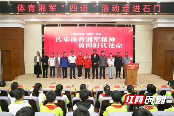 红网时刻新闻4月12日讯(记者 宋沛珊 周雨墨 符洹雨)榜样力量,赋能前行。4月12日上午,以“传承体育湘军精神 勇担时代使命”为主题的体育湘军“四进”活动在石门县第五完全小学举行。