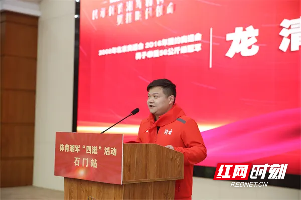 龙清泉介绍了自己的运动员成长经历,揭秘了从普通运动员成长为两届奥运会冠军的背后故事。“挫折就像一块石头,对弱者来说是绊脚石,使你停步不前,但对强者来说却是垫脚石,它会让你站得更高。”龙清泉表示,无论在什么领域扮演什么角色,只要有信心,人就永远不会挫败。走上新工作岗位后,他将用另一种方式继续为湖南体育、中国体育事业发展添砖加瓦。