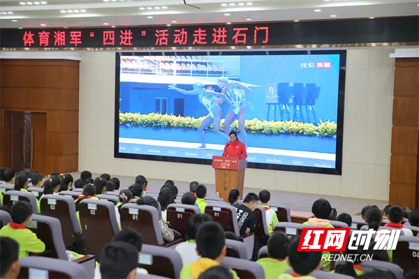 省体育局政策法规处处长董晓辰、一级调研员尹家志,省体育局青少年体育处副处长伍斌,北京奥运会、里约奥运会举重冠军龙清泉,伦敦、里约、东京连续三届奥运会花样游泳银牌得主孙文雁,常德市文旅广体局副局长刘丽艳,石门县委常委、宣传部部长刘力耕等出席,县人民政府副县长唐汇驰主持,石门县直部门、县属小学教师学生参加活动。