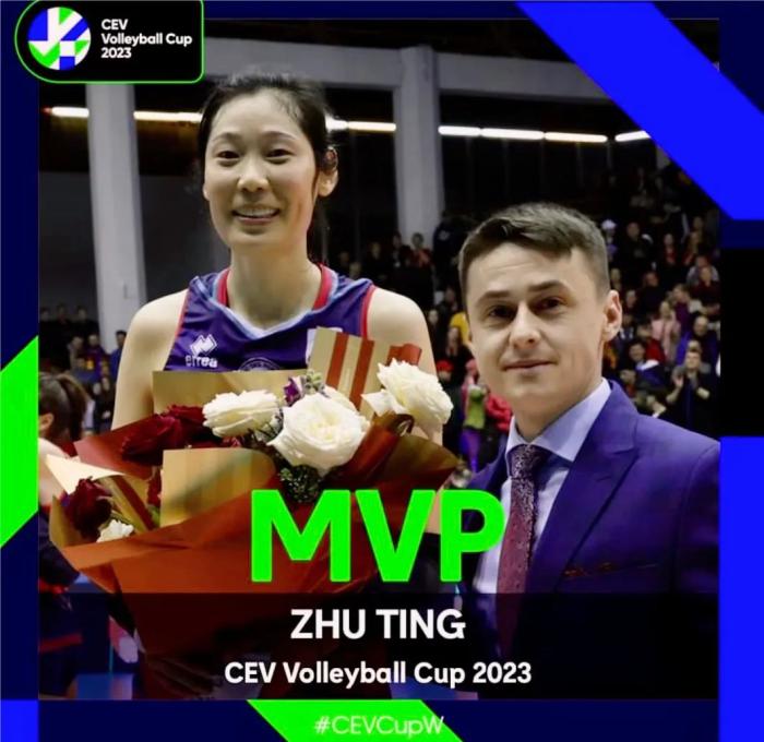 稍显遗憾的是,两场比赛砍下43分的朱婷无缘最终的MVP奖杯,该奖项被她的队友,本场比赛得到20分的接应二传安特罗波娃获得。
