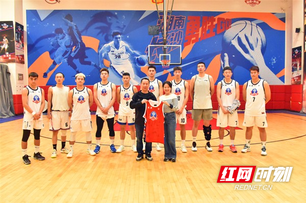 勇胜男篮向长沙银行增送全队签名球衣。