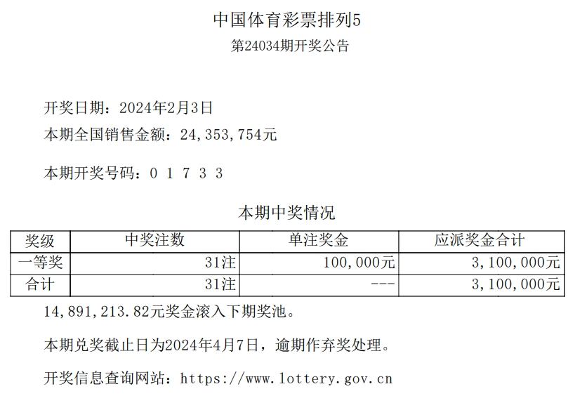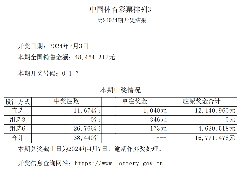 中国体育彩票2月3日开奖信息