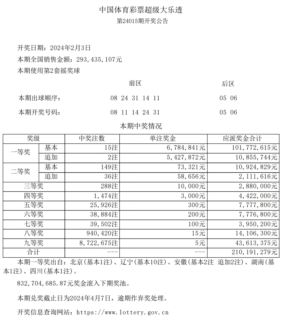 来源:中国体育彩票