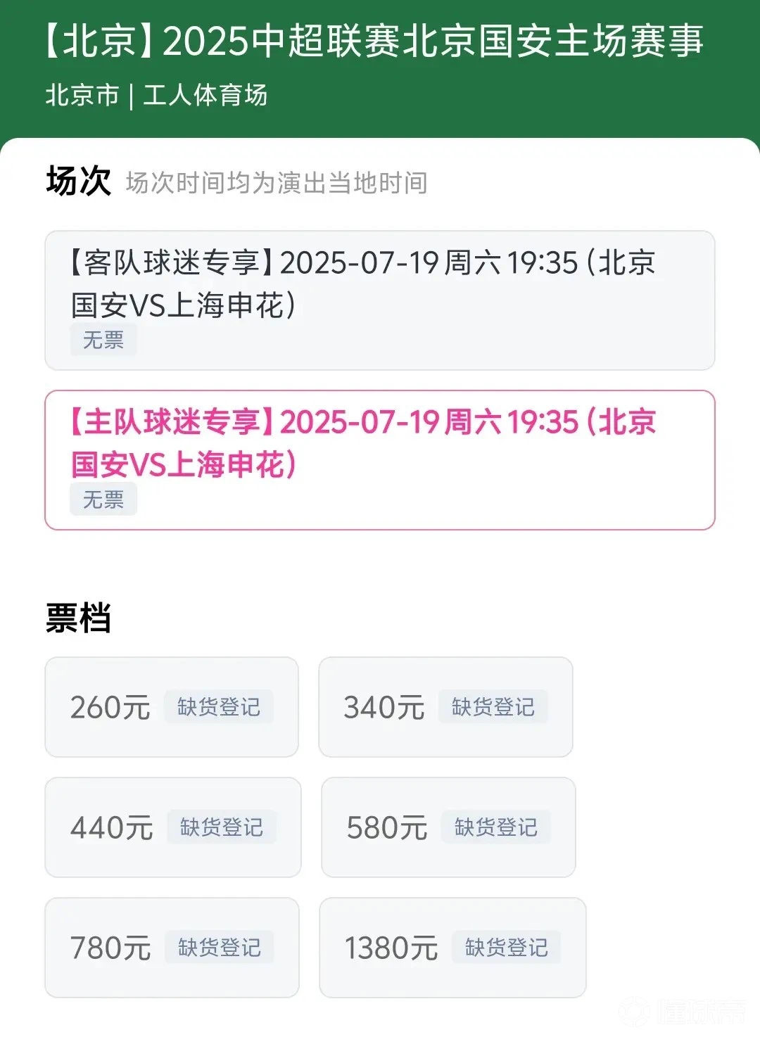 北京时间7月19日晚7点35分,中超第17轮将迎来天王山之战——目前积分并列第一的北京国安和上海申花将在北京工人体育场交锋。13日上午10点整,本场比赛的门票开始发售,开票不到2分钟,所有档次的球票均售罄,比赛的热度由此可见一斑。
