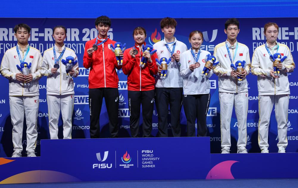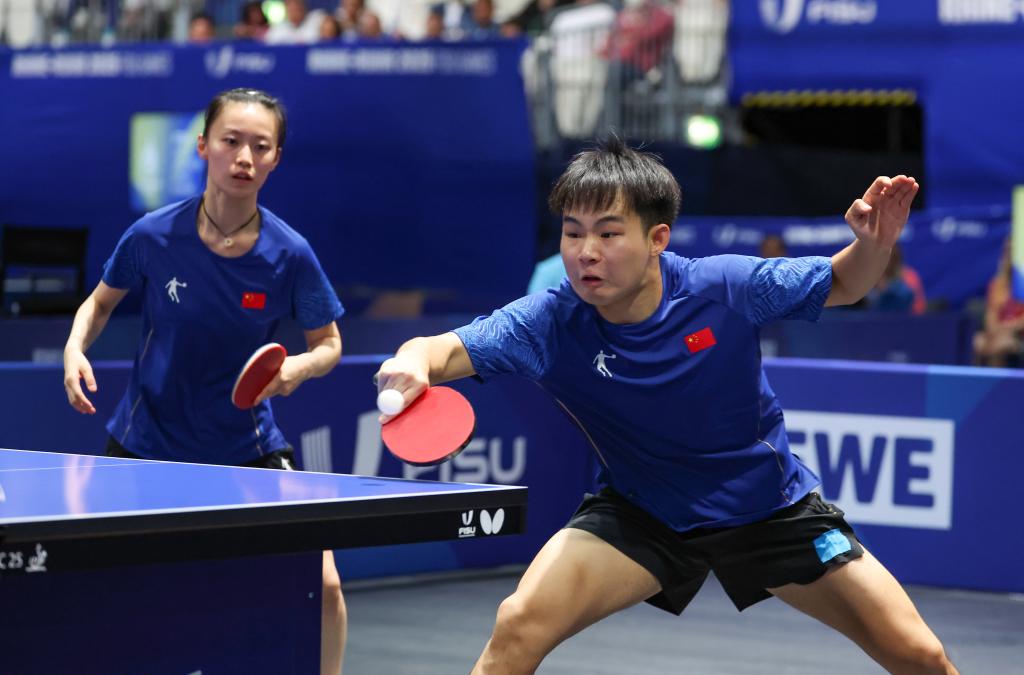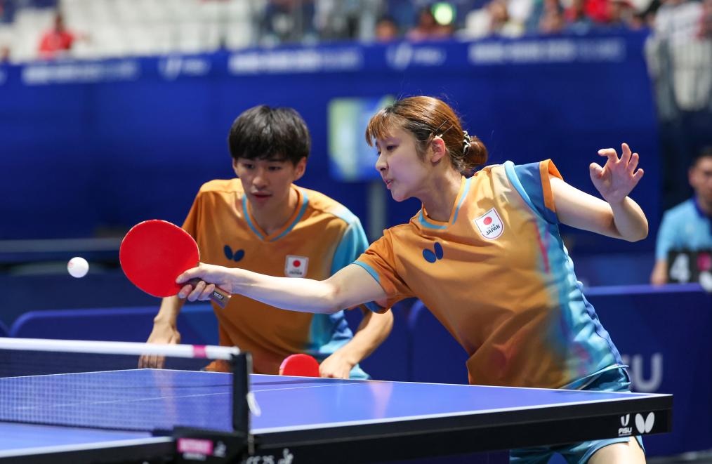 在22日举行的莱茵-鲁尔大运会乒乓球混双决赛中,中国组合曾蓓勋/韩菲儿在大比分3:1领先的情况下,被日本组合冈野俊介/出泽杏佳以4:3逆转,获得亚军。
