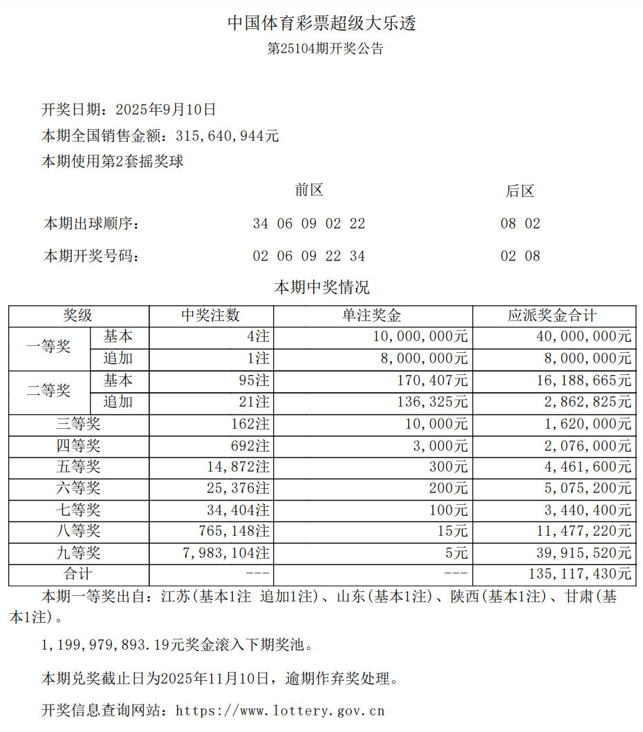 中国体育彩票2025年9月10日开奖信息