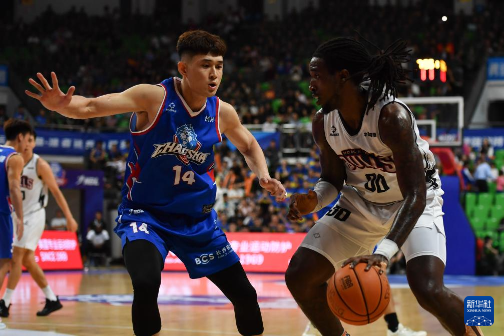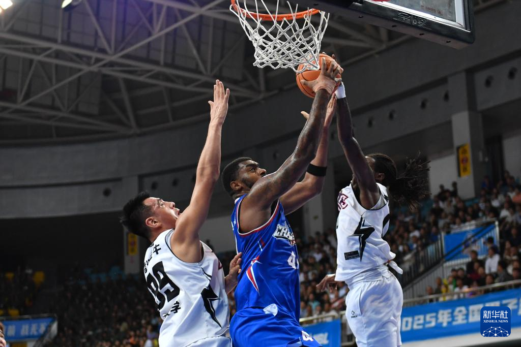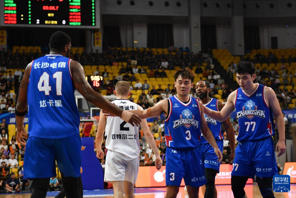 9月22日,长沙电信勇胜队球员德兹明·威尔斯(左一)在比赛中。