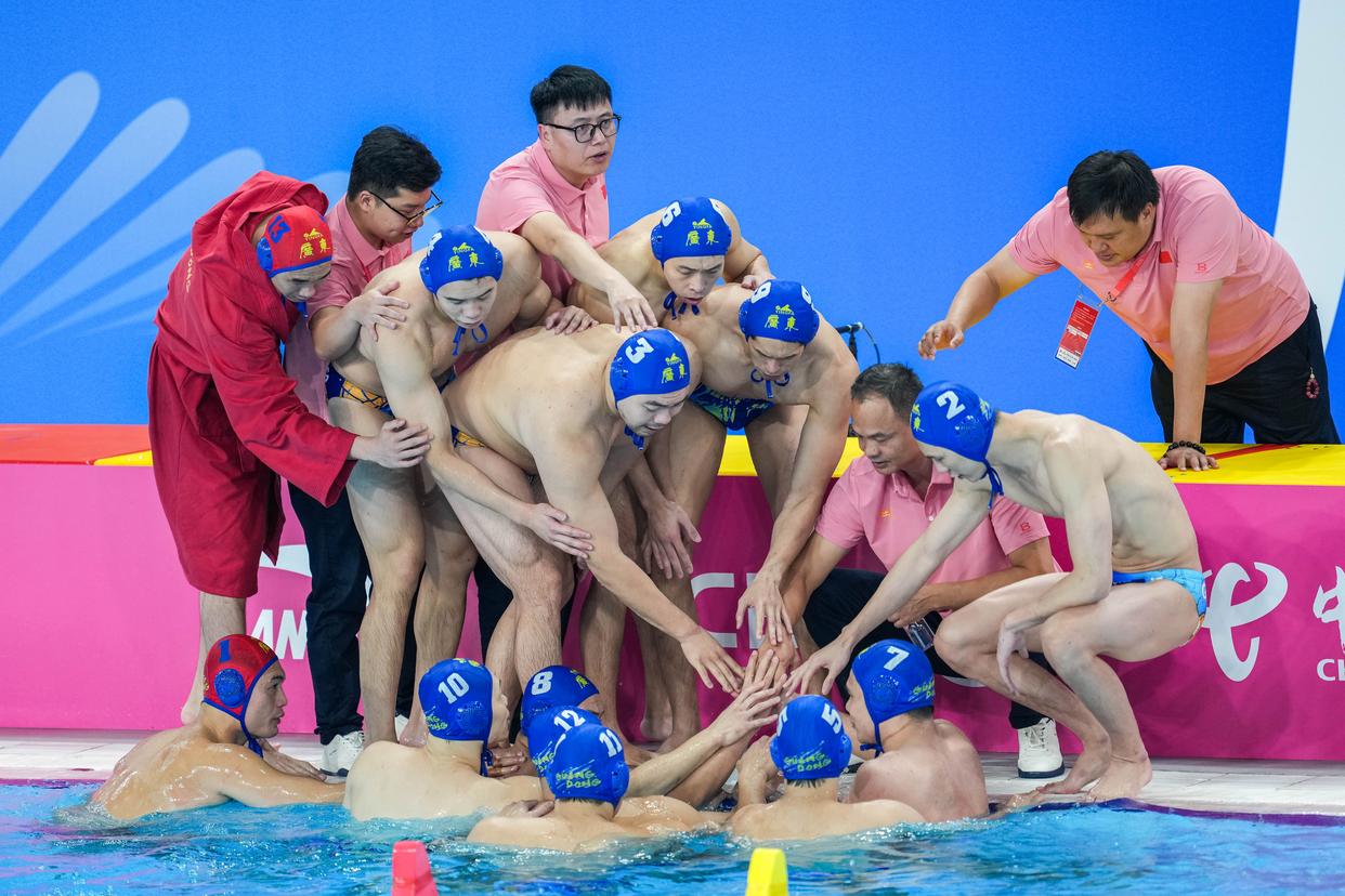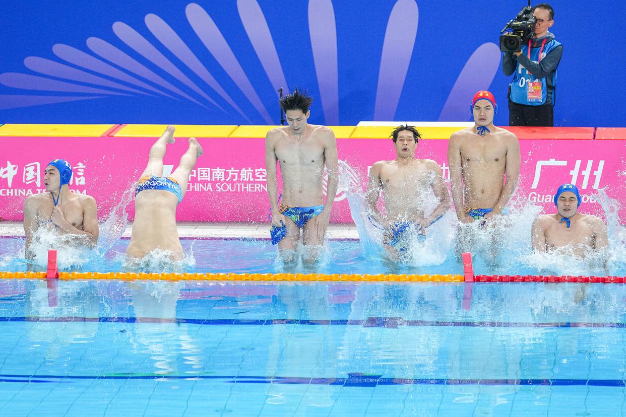 当日,在广州举行的第十五届全国运动会男子水球上半区半决赛第二场比赛中,广东队13比7战胜湖南队。